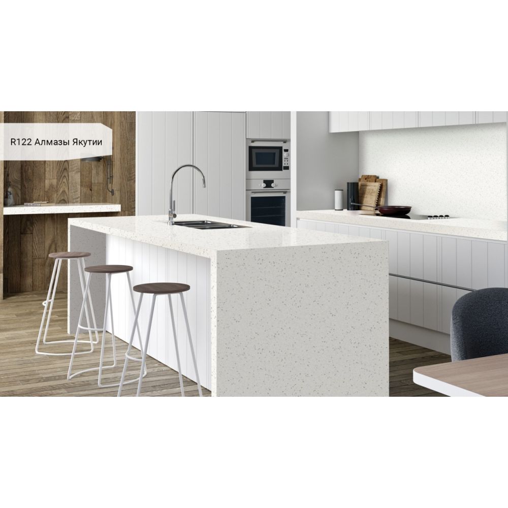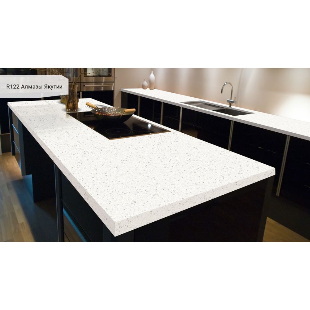 Кварцевый агломерат Аварус идеально подойдет для столешницы для кухни или ванной комнаты.