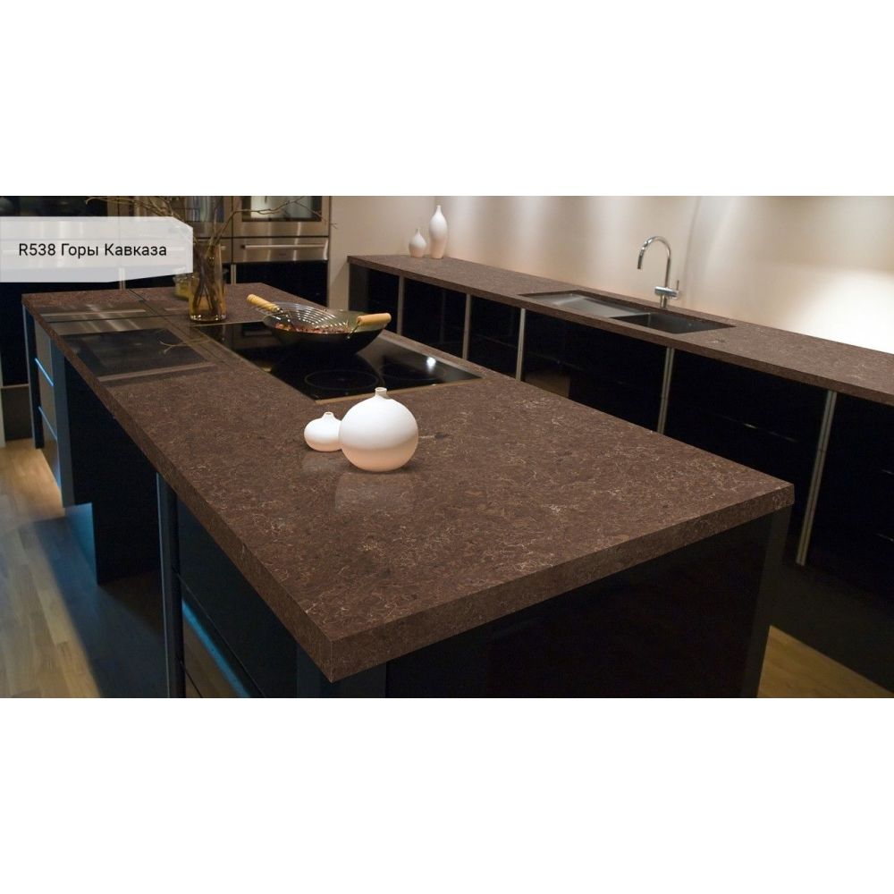 Кварцевый агломерат Аварус идеально подойдет для столешницы для кухни или ванной комнаты.
