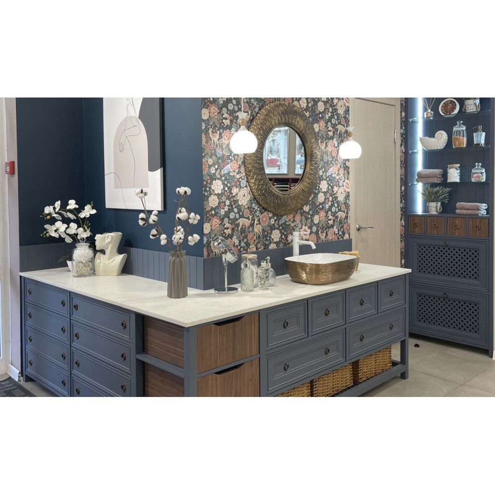 Кварцевый агломерат Аварус идеально подойдет для столешницы для кухни или ванной комнаты.