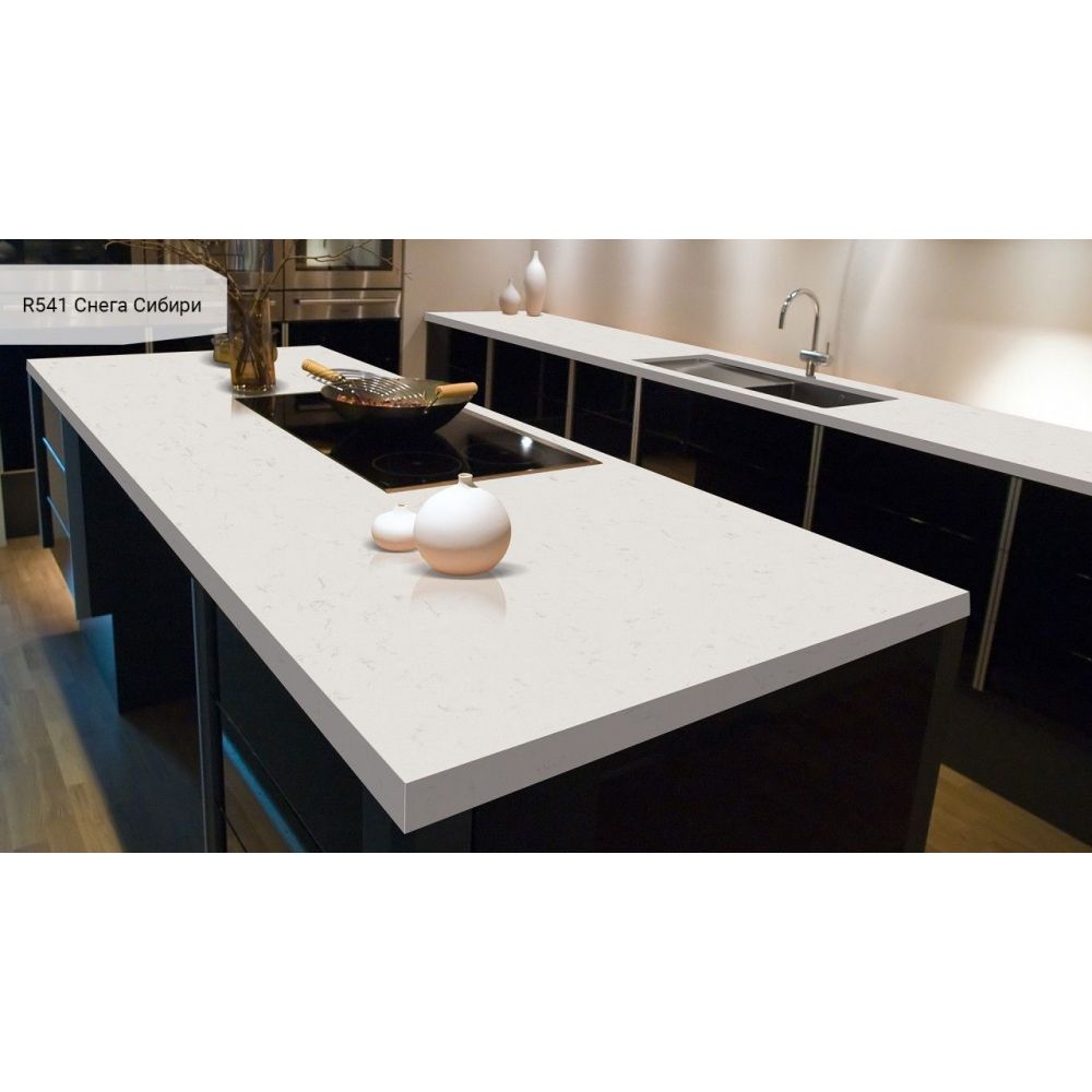 Кварцевый агломерат Аварус идеально подойдет для столешницы для кухни или ванной комнаты.