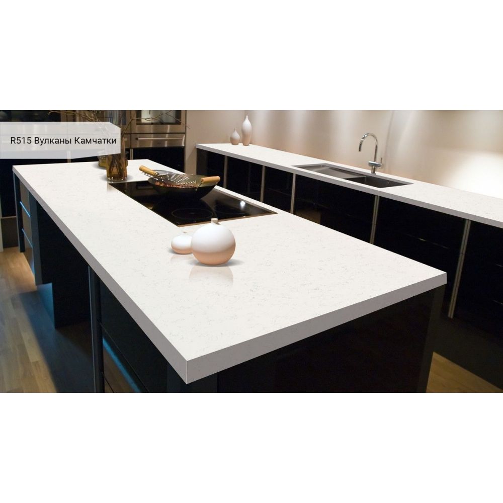 Кварцевый агломерат Аварус идеально подойдет для столешницы для кухни или ванной комнаты.