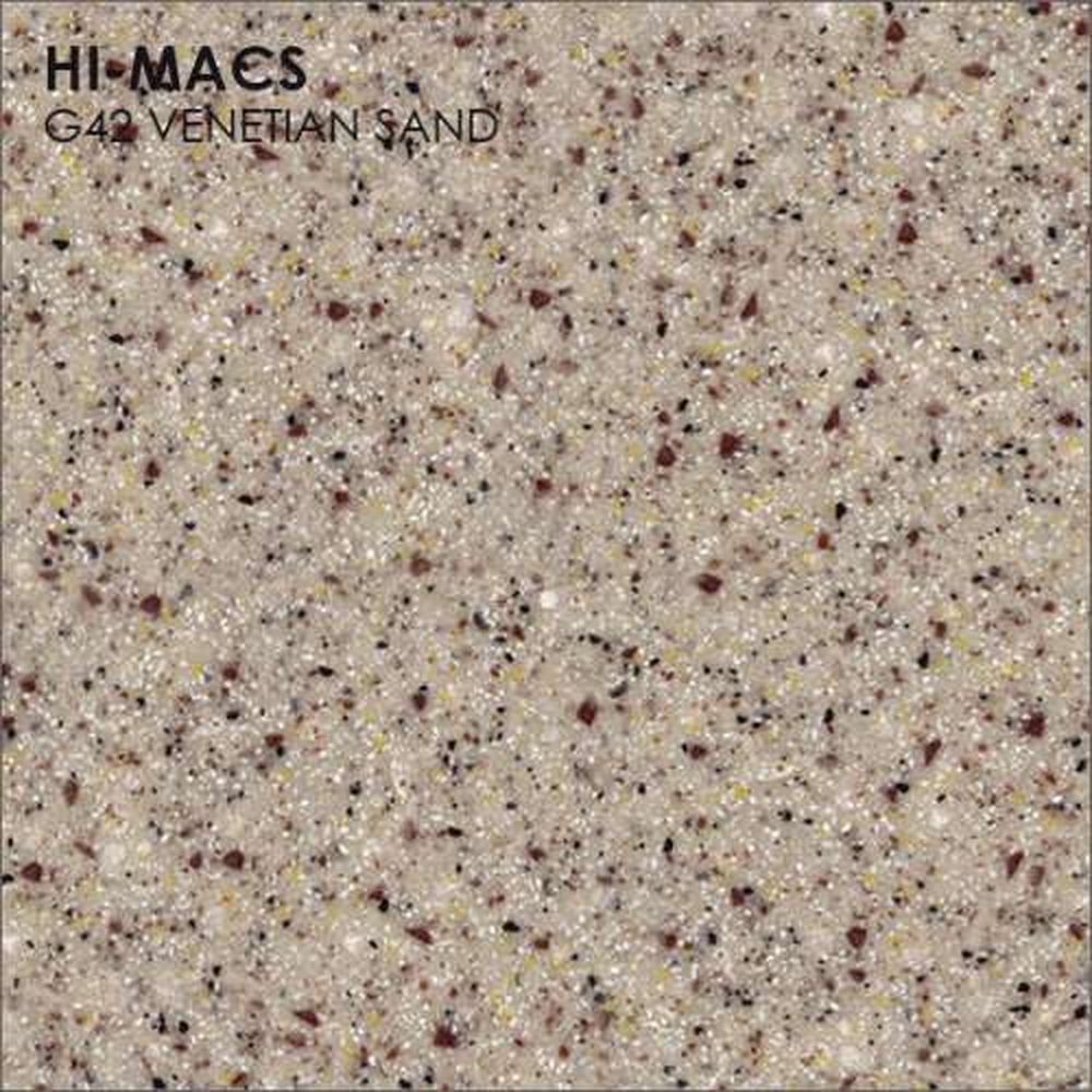 В состав искусственного акрилового камня HiMacs by LG входят цвета широкой палитры. Искусственный камень LG варьирует от простых однотонных до сложных мраморных цветовых решений. Все листы имеют идеально ровную поверхность, а лицевая сторона листа покрыта специально йзащитной пленкой. Все листы реализуются кратно 1/4 листа. К каждому лист идет клей своего оттенка.